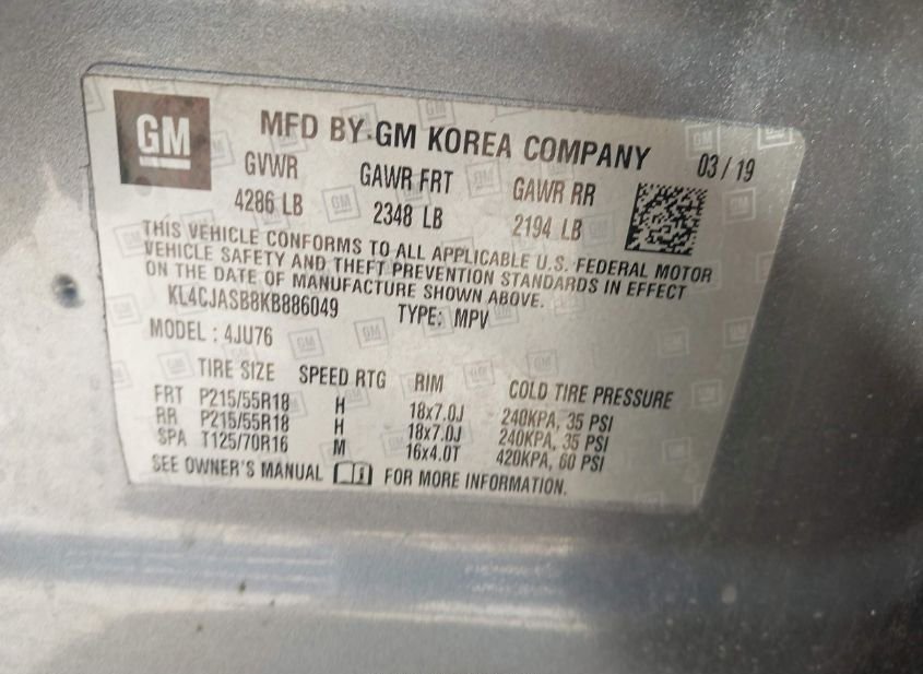 - VIN: KL4CJASB8KB886049