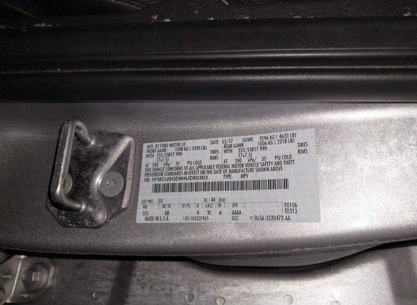 - VIN: 1FMCU0GD9HUD50303