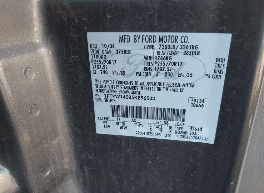 - VIN: 1FTPW14585KB96533