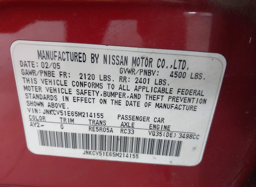 - Название лота: 2005 INFINITI G35