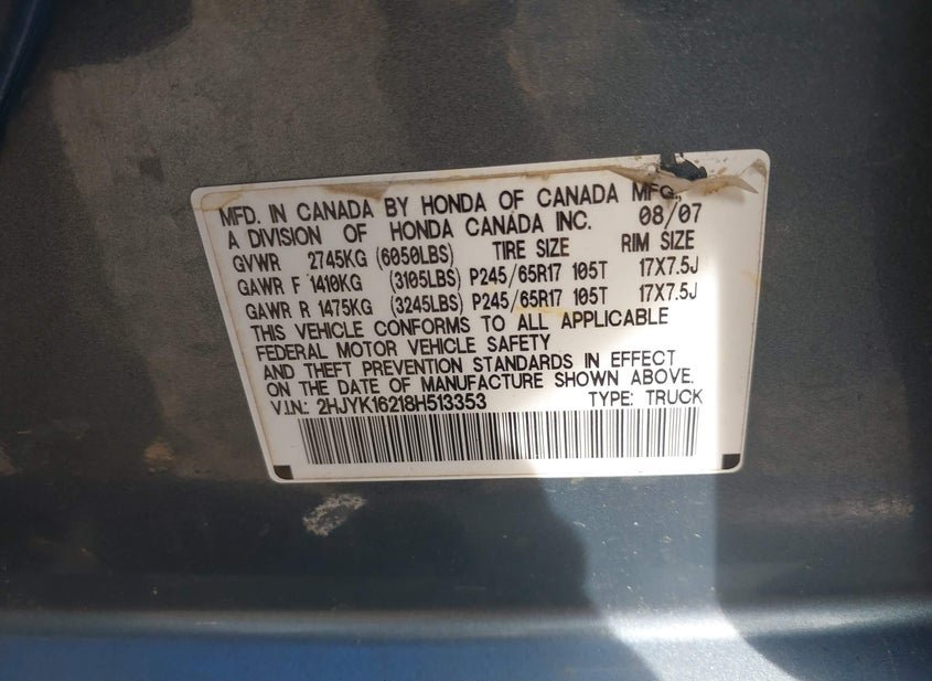 - Название лота: 2008 HONDA RIDGELINE RT