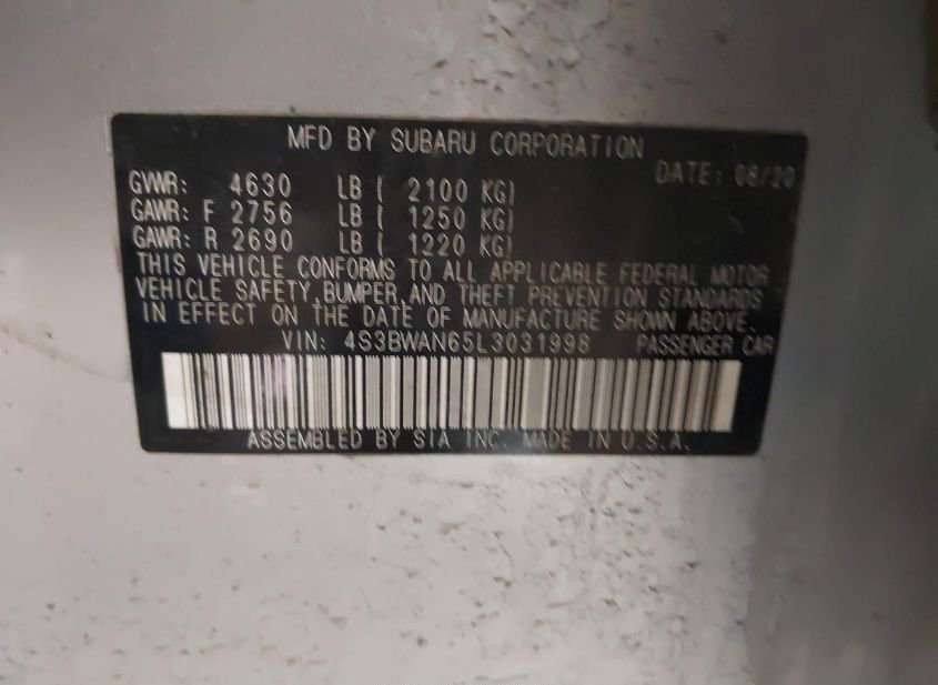 - VIN: 4S3BWAN65L3031998