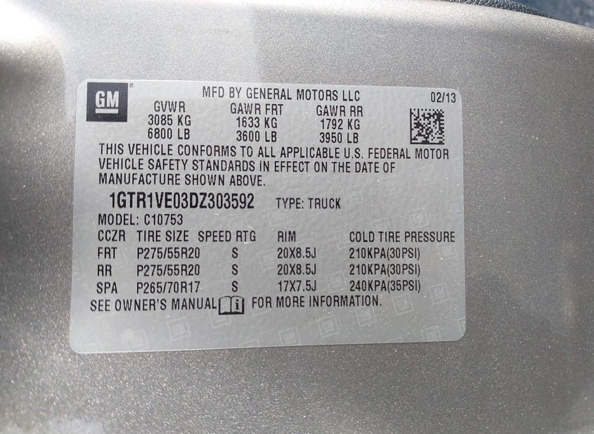 - VIN: 1GTR1VE03DZ303592