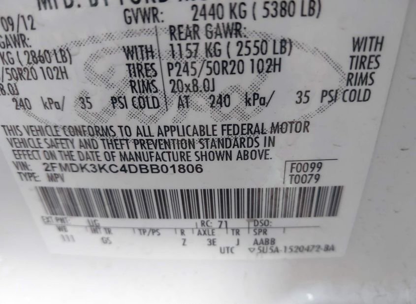 - VIN: 2FMDK3KC4DBB01806