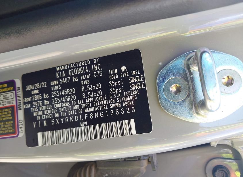 - VIN: 5XYRKDLF8NG136323