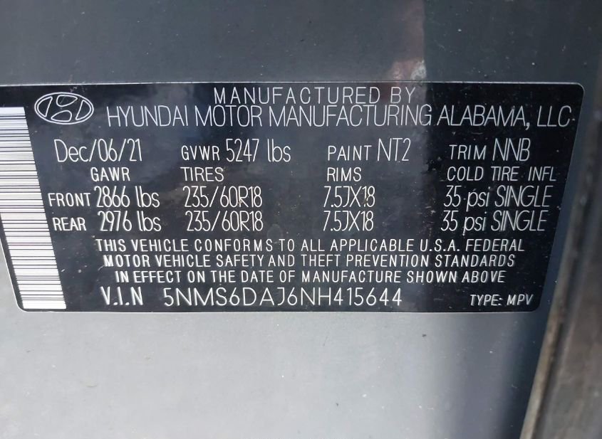 - VIN: 5NMS6DAJ6NH415644