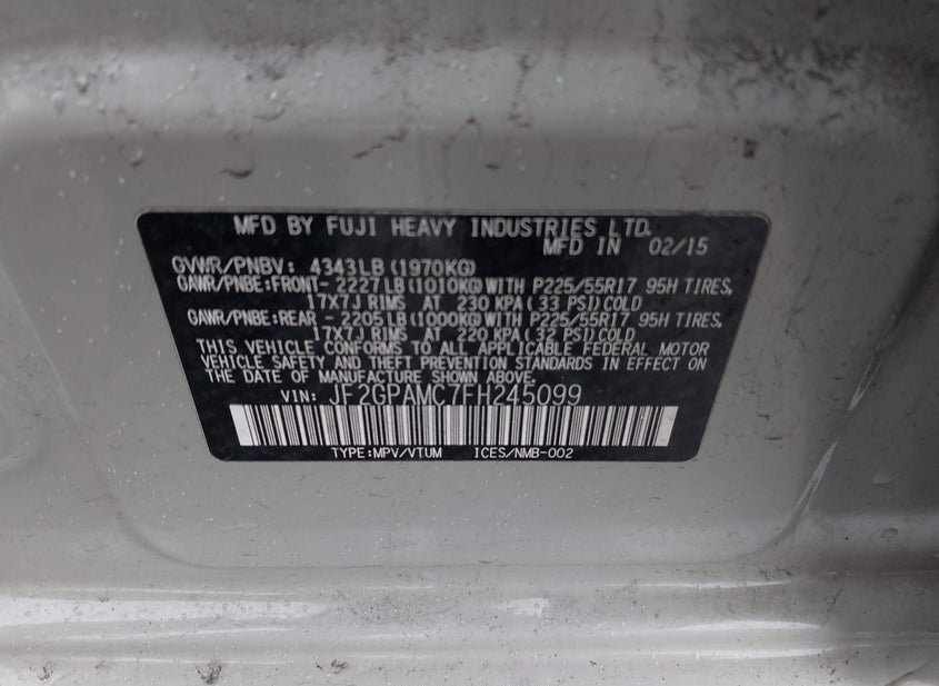 - VIN: JF2GPAMC7FH245099
