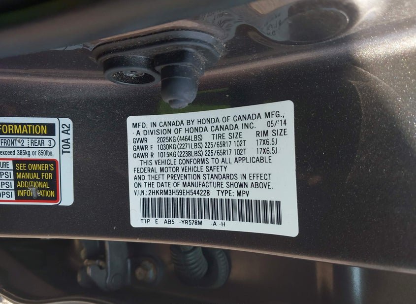 - VIN: 2HKRM3H59EH544228