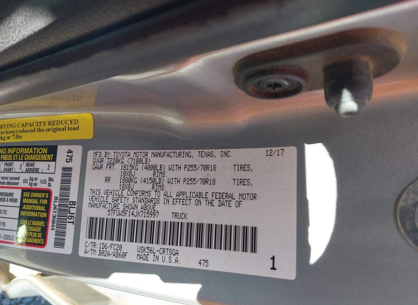 - VIN: 5TFUW5F14JX715997
