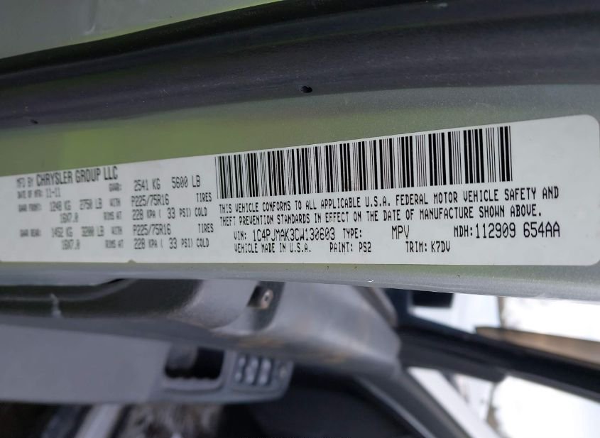 - VIN: 1C4PJMAK3CW130603