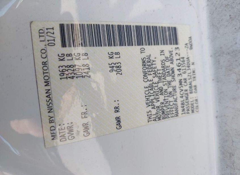 - Название лота: 2021 NISSAN ALTIMA SR FWD