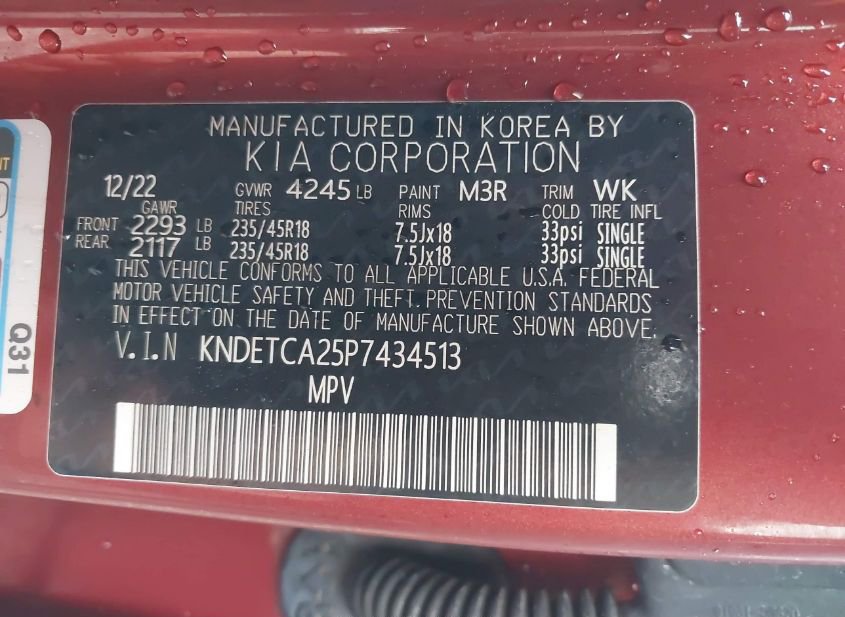 - VIN: KNDETCA25P7434513