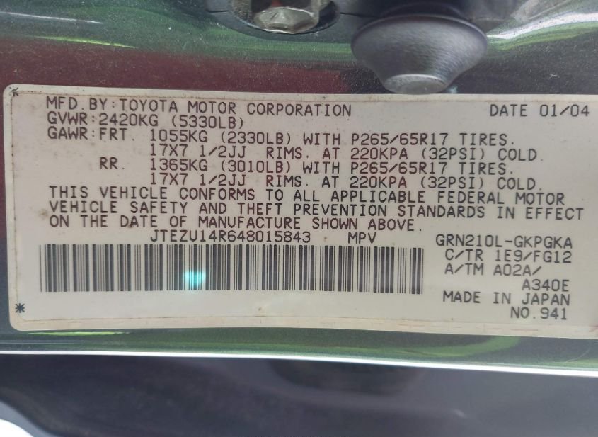 - VIN: JTEZU14R648015843