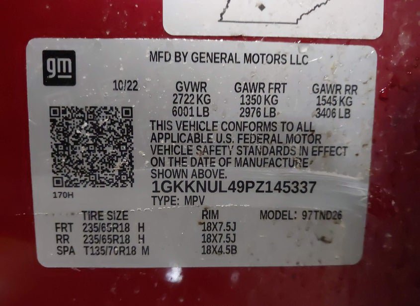 - VIN: 1GKKNUL49PZ145337