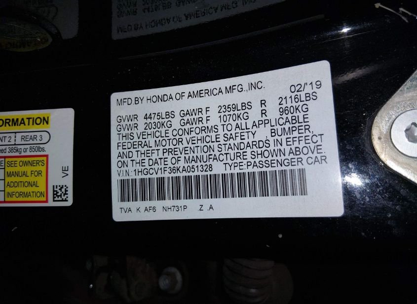 - VIN: 1HGCV1F36KA051328