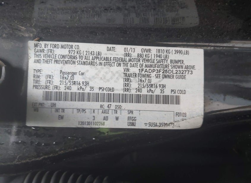 - VIN: 1FADP3F25DL232773