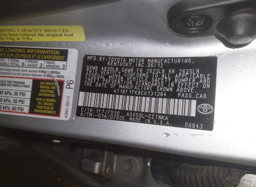 - VIN: 4T1BF1FK8CU131384