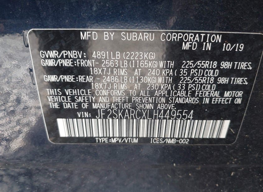 - VIN: JF2SKARCXLH449554