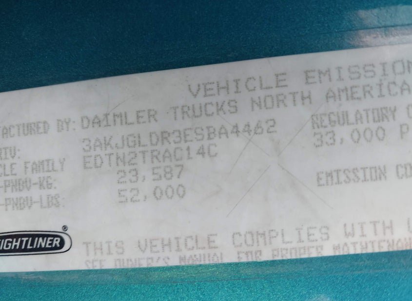 - VIN: 3AKJGLDR3ESBA4462