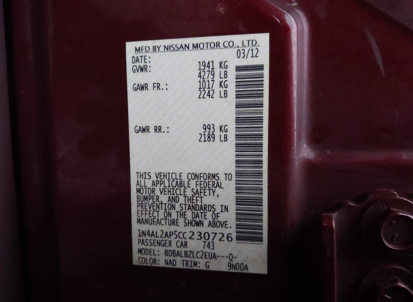 - VIN: 1N4AL2AP5CC230726