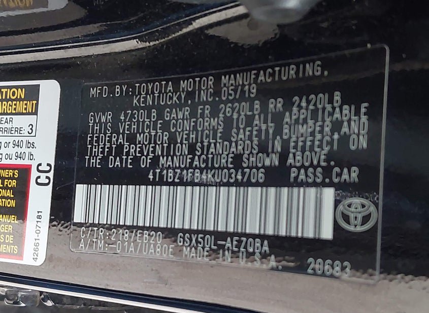 - VIN: 4T1BZ1FB4KU034706