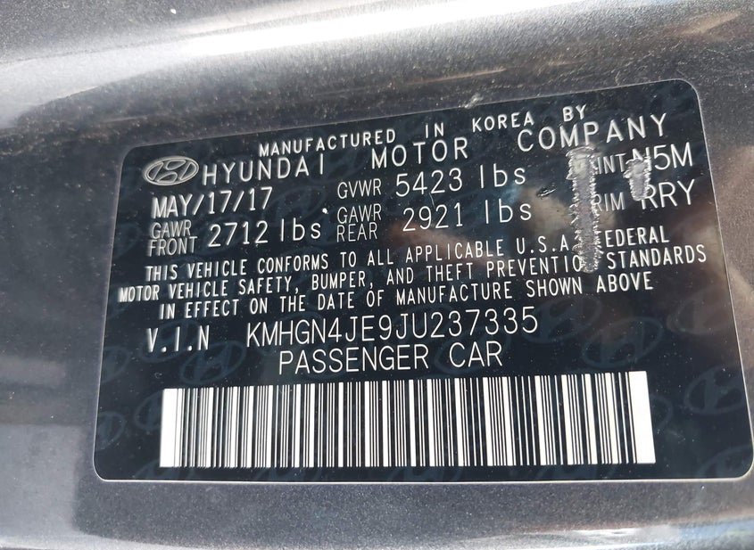 - VIN: KMHGN4JE9JU237335