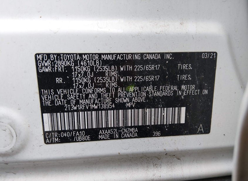 - VIN: 2T3W1RFV1MW138954