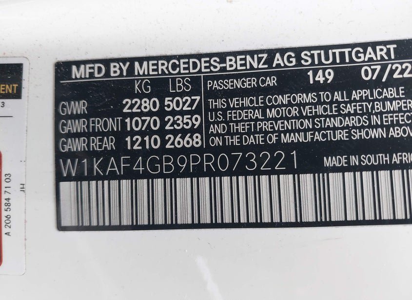 - VIN: W1KAF4GB9PR073221