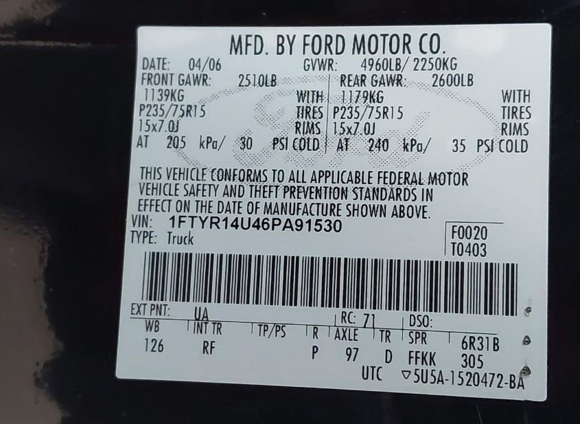 - VIN: 1FTYR14U46PA91530