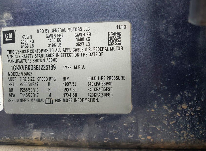 - VIN: 1GKKVRKD3EJ225789