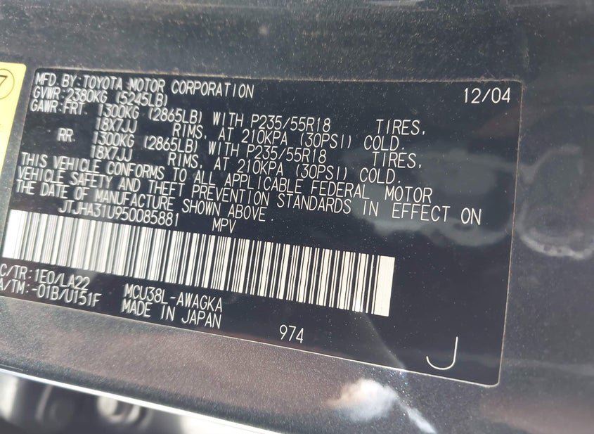 - VIN: JTJHA31U950085881