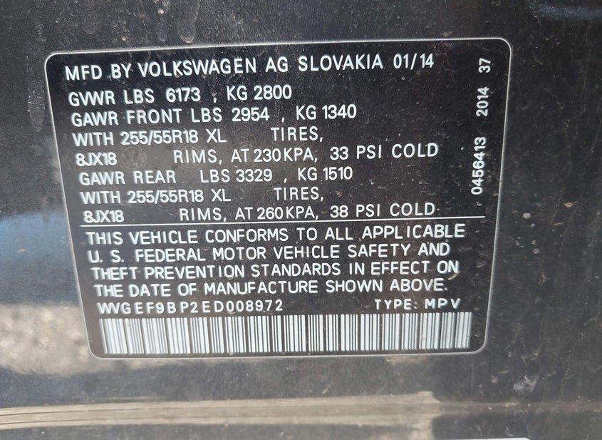 - VIN: WVGEF9BP2ED008972