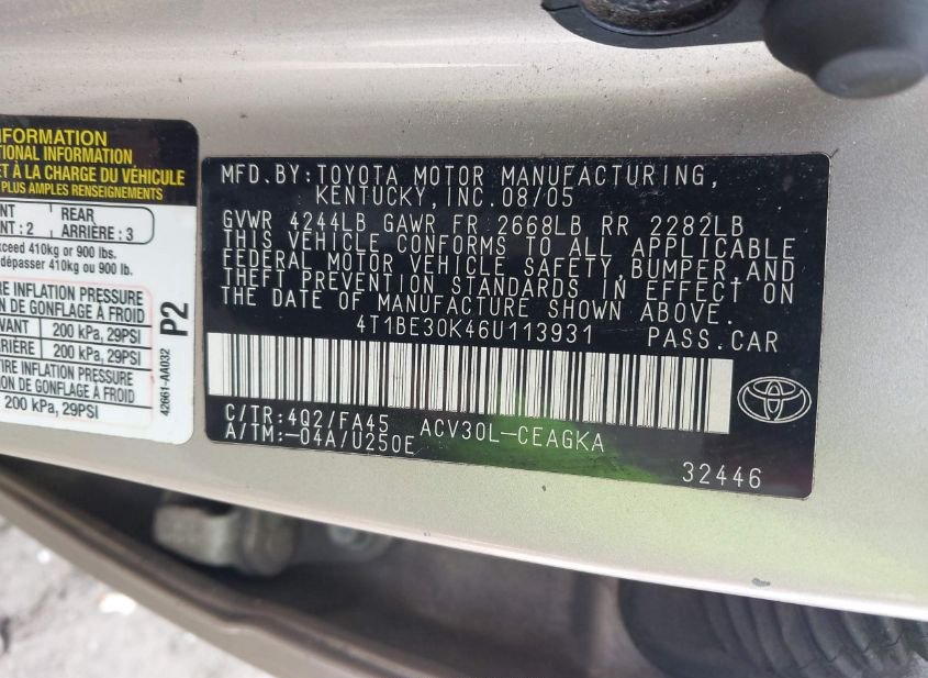 - VIN: 4T1BE30K46U113931