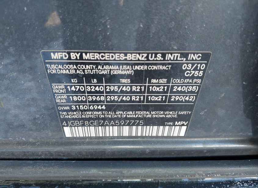 - VIN: 4JGBF8GE7AA597775