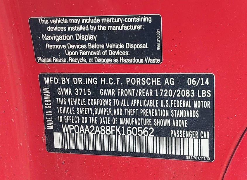 - VIN: WP0AA2A88FK160562