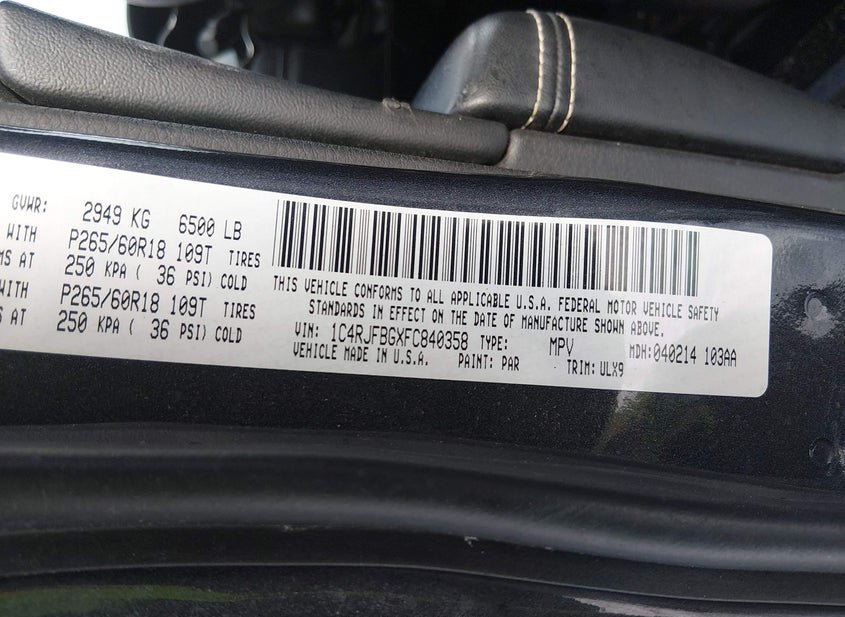 - VIN: 1C4RJFBGXFC840358