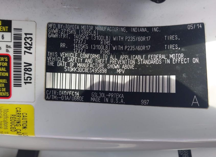 - VIN: 5TDKK3DC8ES495898