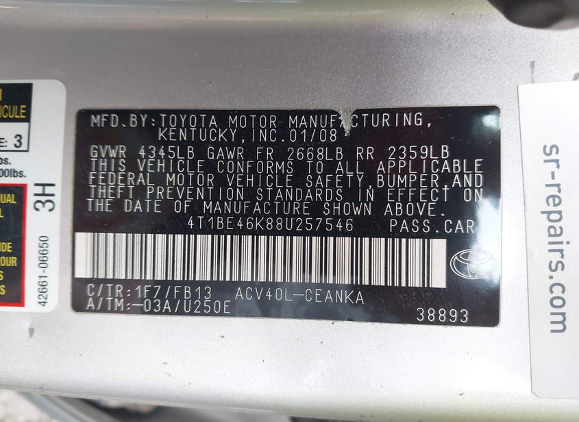 - VIN: 4T1BE46K88U257546