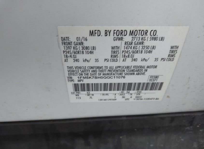 - VIN: 1FM5K7BH0GGC11076