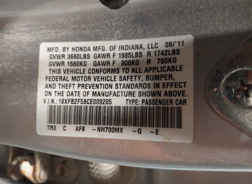 - VIN: 19XFB2F58CE009205
