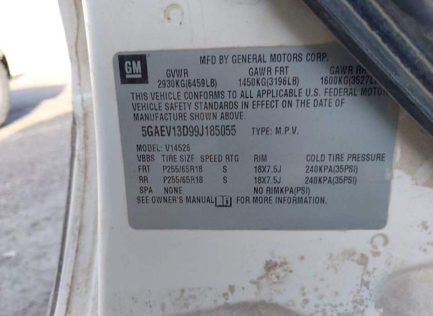 - VIN: 5GAEV13D99J185055