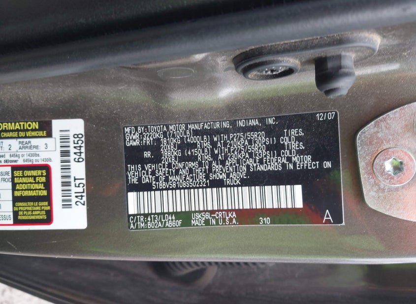 - VIN: 5TBBV58108S502321