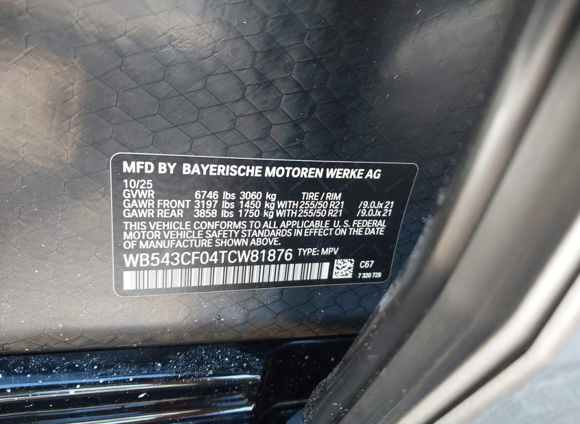 - VIN: WB543CF04TCW81876