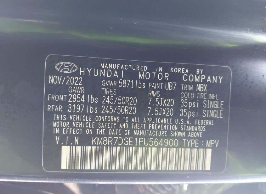 - VIN: KM8R7DGE1PU564900