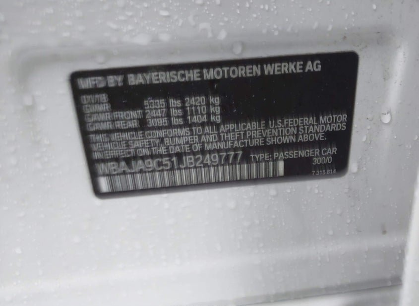 - VIN: WBAJA9C51JB249777