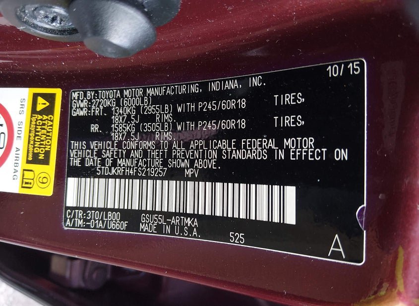 - VIN: 5TDJKRFH4FS219257