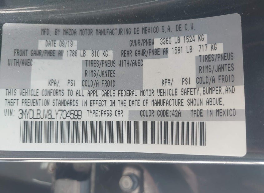 - VIN: 3MYDLBJV8LY704599