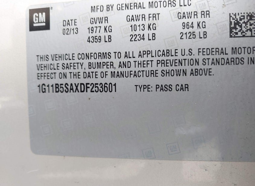 - VIN: 1G11B5SAXDF253601