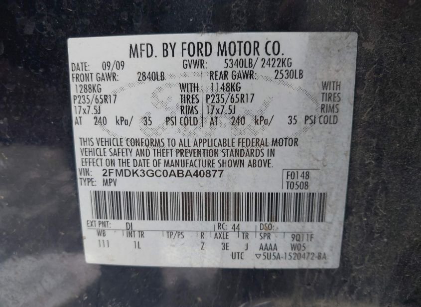 - VIN: 2FMDK3GC0ABA40877