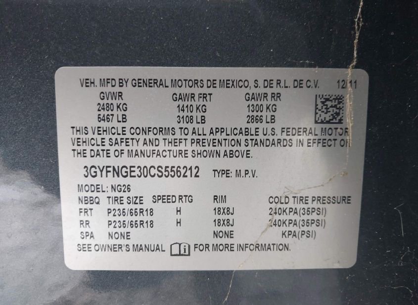 - VIN: 3GYFNGE30CS556212